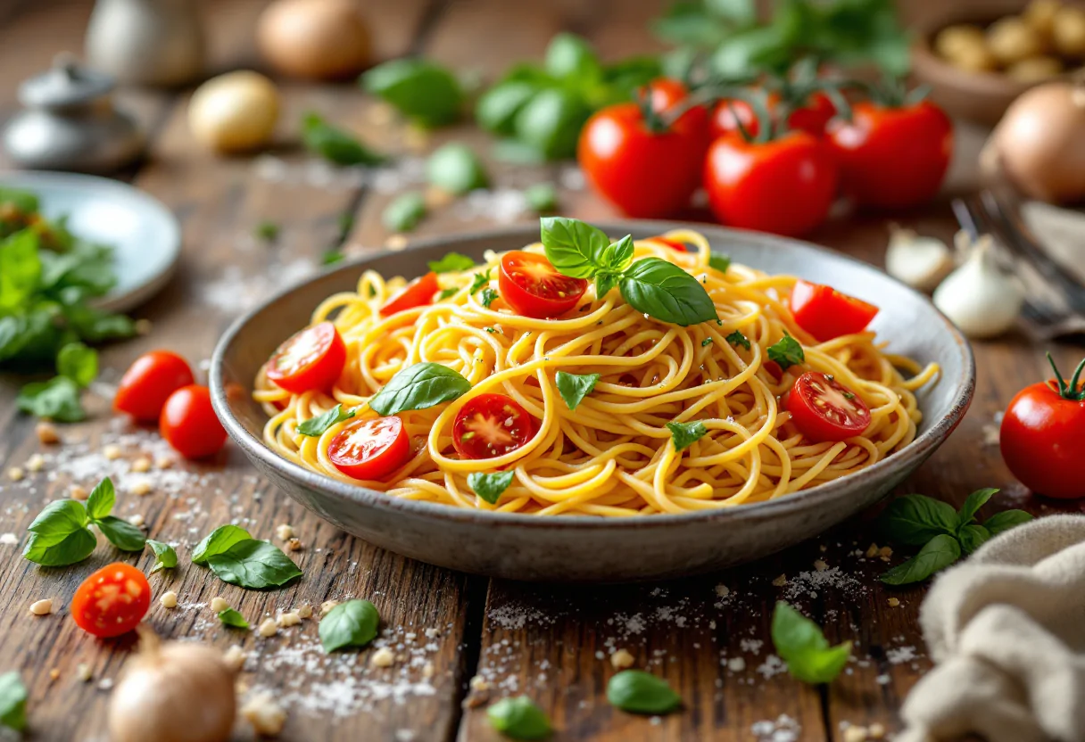 Gli spaghetti alla contadina sono un piatto che racchiude l’essenza della cucina siciliana. Per preparare questa delizia, avrai bisogno di ingredienti semplici ma di alta qualità. Gli ingredienti principali includono spaghetti, pomodori freschi, cipolla, aglio, olio extravergine d’oliva, basilico e peperoncino. Ogni elemento gioca un ruolo fondamentale nel creare un piatto ricco di sapore e tradizione.