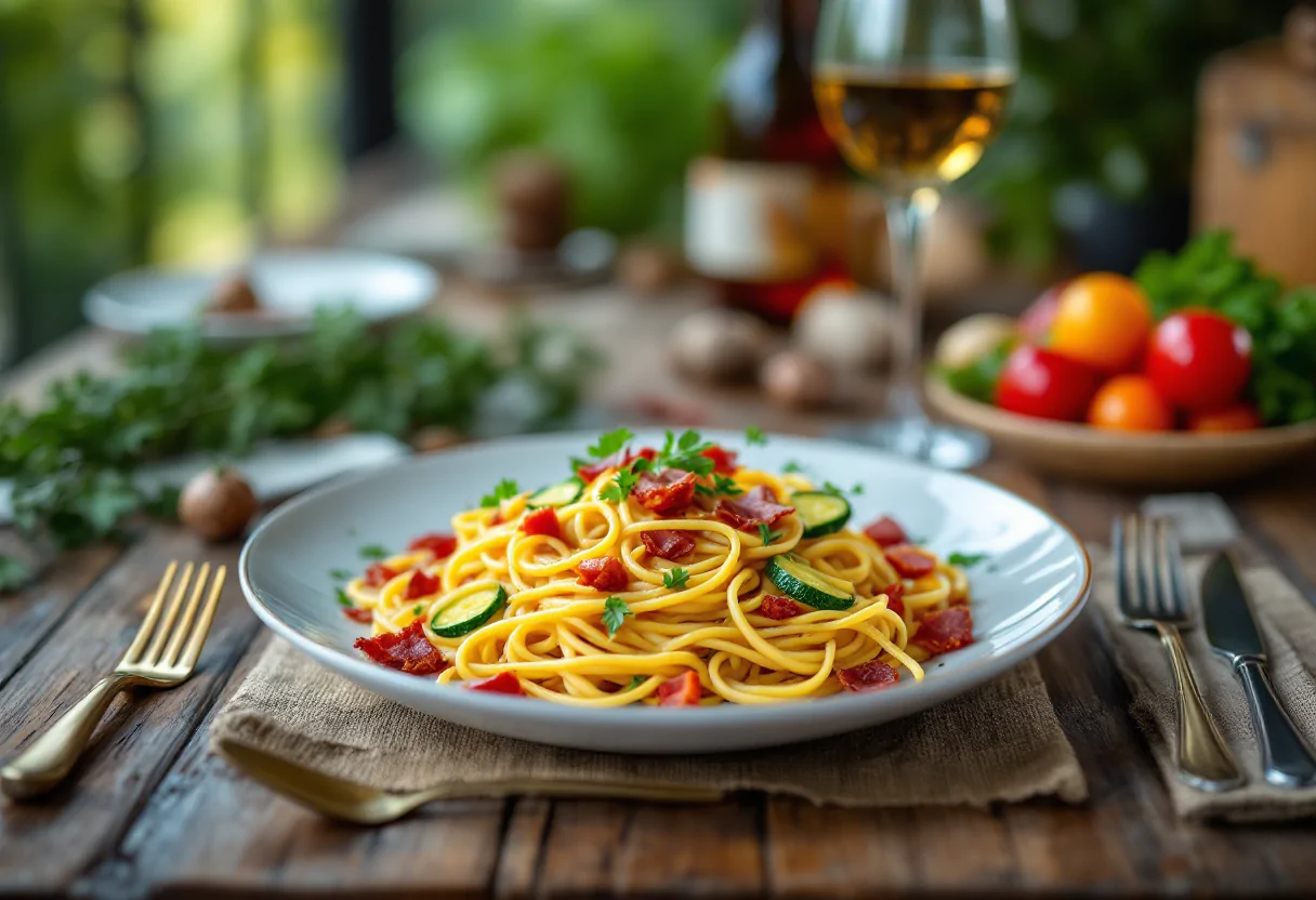 Gli spaghetti fritti con zucchine e pancetta rappresentano una proposta culinaria innovativa che trasforma un semplice piatto di pasta in un’esperienza gastronomica unica. Questa ricetta è perfetta per chi desidera sorprendere gli ospiti con un antipasto sfizioso o un piatto principale alternativo. La combinazione di ingredienti freschi e la tecnica di frittura conferiscono a questo piatto una croccantezza irresistibile, rendendolo ideale per brunch, buffet o picnic.