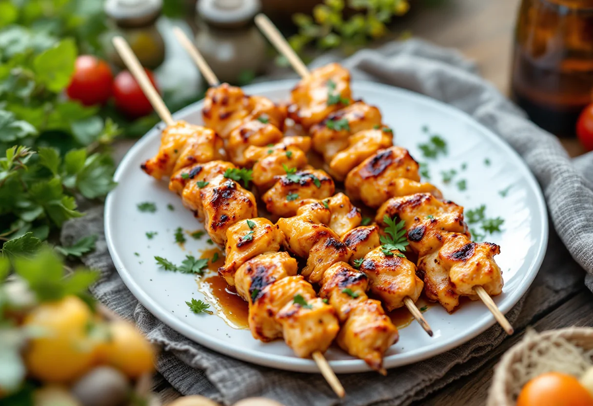 Gli spiedini di pollo marinati sono un piatto versatile e adatto a ogni occasione estiva.