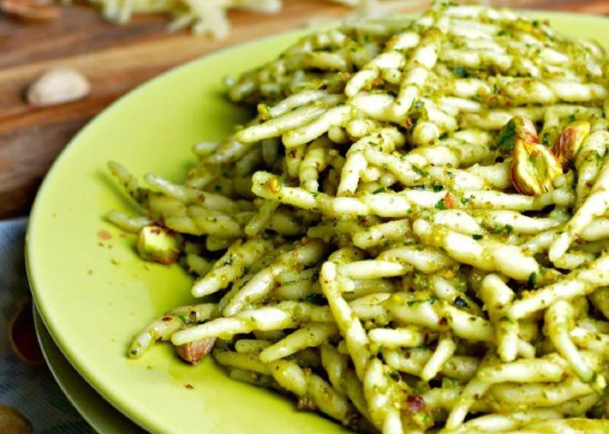 Ma cosa succede se la tradizione vuole modernizzarsi e creare un nuovo connubio costituito dalle trofie insaporite con pesto di pistacchi e non più di basilico? Succede che ne nasce un piatto moderno ma altrettanto allettante. Unisce il sapore caratteristico delle trofie fresche al gusto aromatico del pistacchio, meglio ancora se provenienti da Bronte, la cittadina siciliana conosciuta ormai in tutto il mondo per la qualità legata alla produzione di questo frutto.