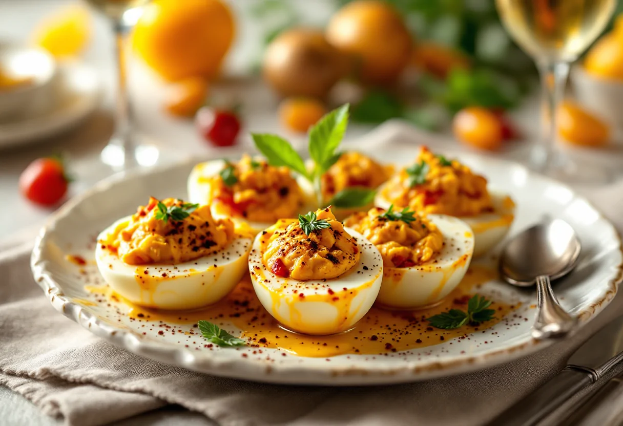 Scopri il sapore unico delle uova ripiene alla piemontese, un antipasto da non perdere.