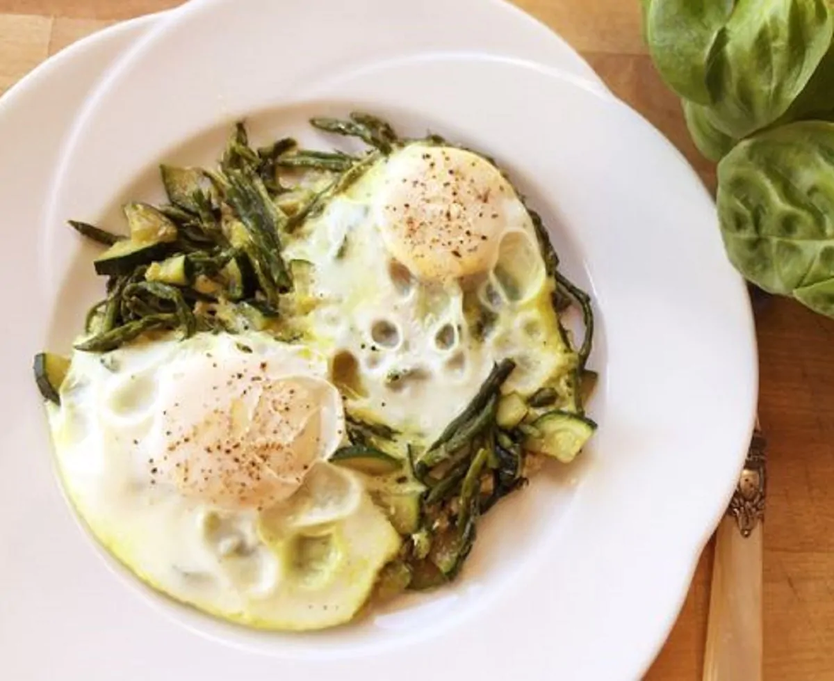 - Quando gli asparagi si sono inteneriti aggiungete le uova sbattute, e appena le uova iniziano a solidificarsi mescolatele con una forchetta, per evitare che diventino una frittata. Una volta cotte, impiattate e servite calde.
