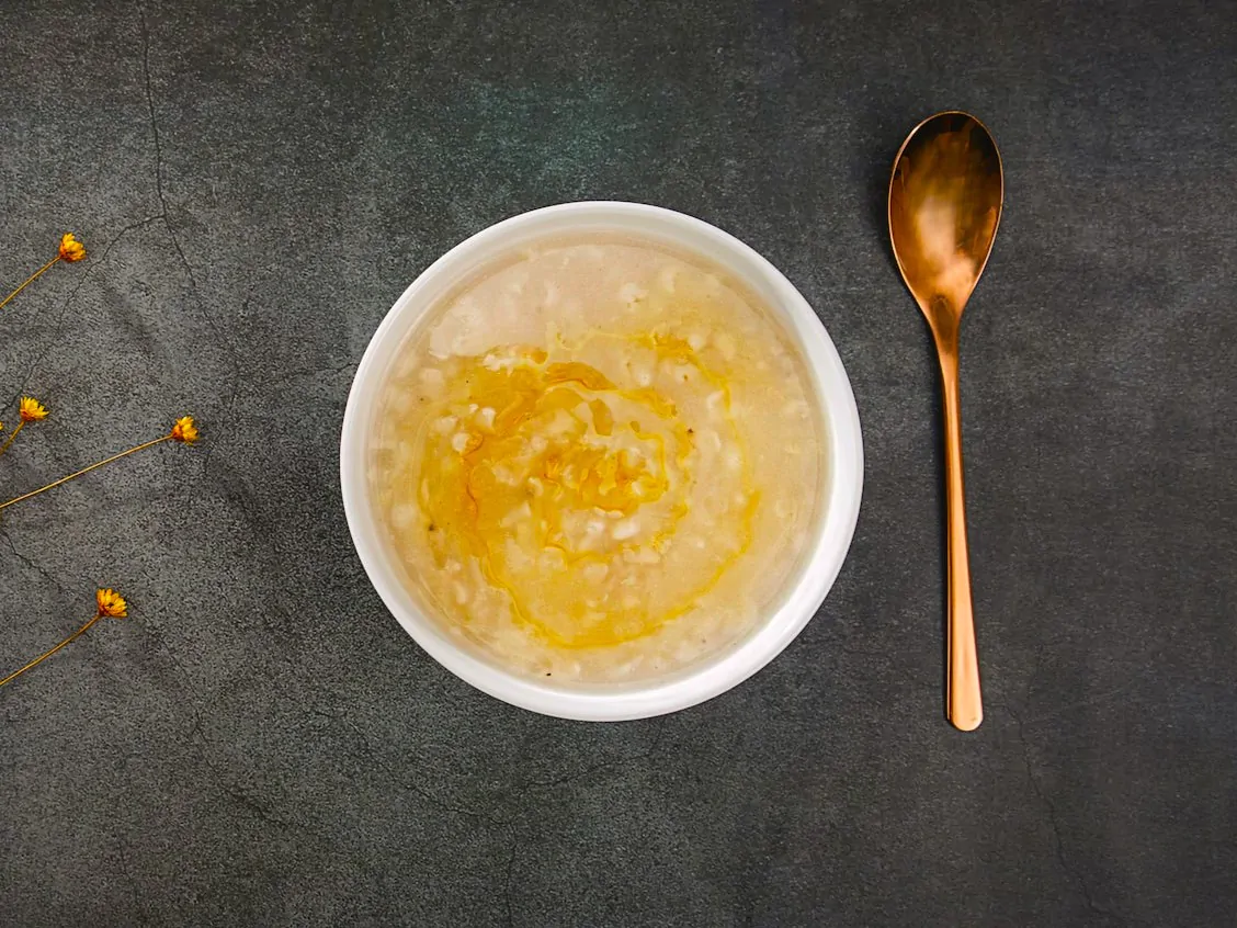 - Sciogliete una bustina di zafferano in un bicchierino di brodo caldo, incorporatelo al resto del brodo e mescolate. Portate ebollizione il brodo e unite la pastella di uova, formaggio e pane.