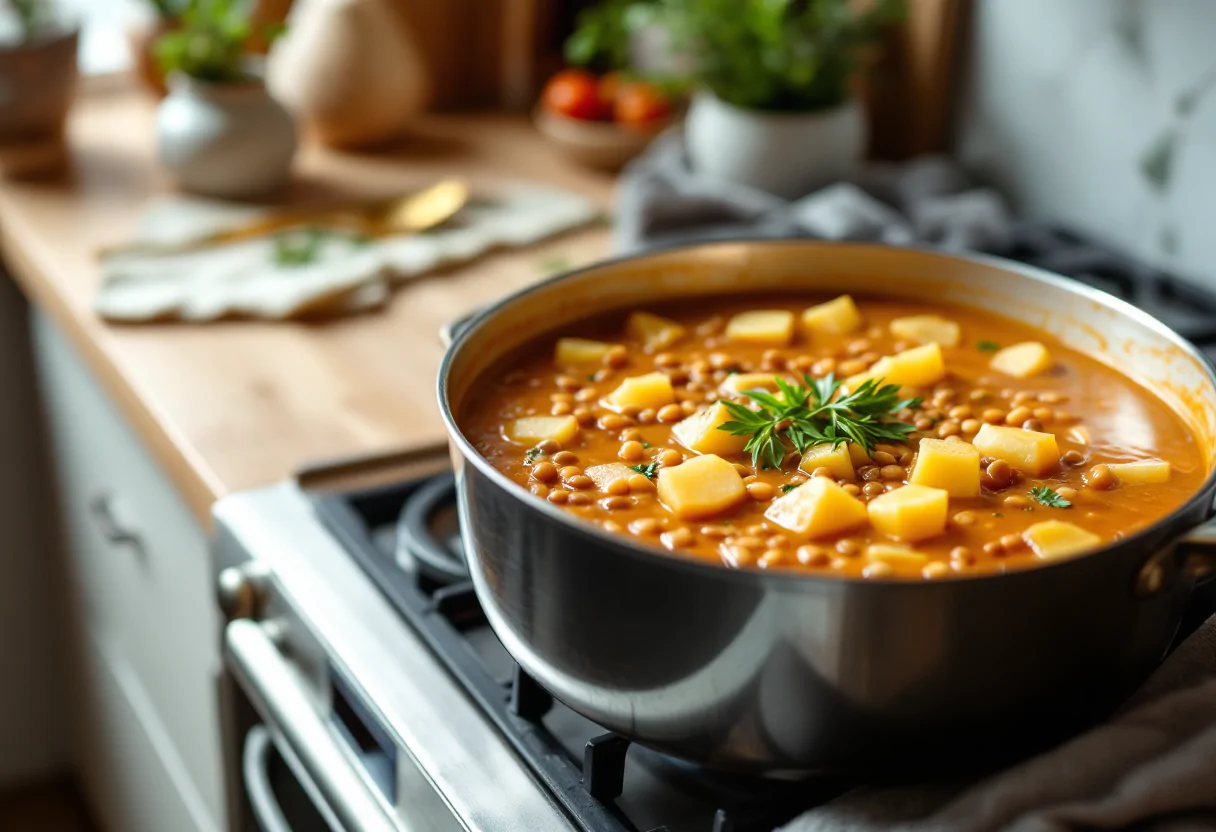 Scopri la ricetta della zuppa cremosa di lenticchie rosse e patate, perfetta per le giornate fredde.