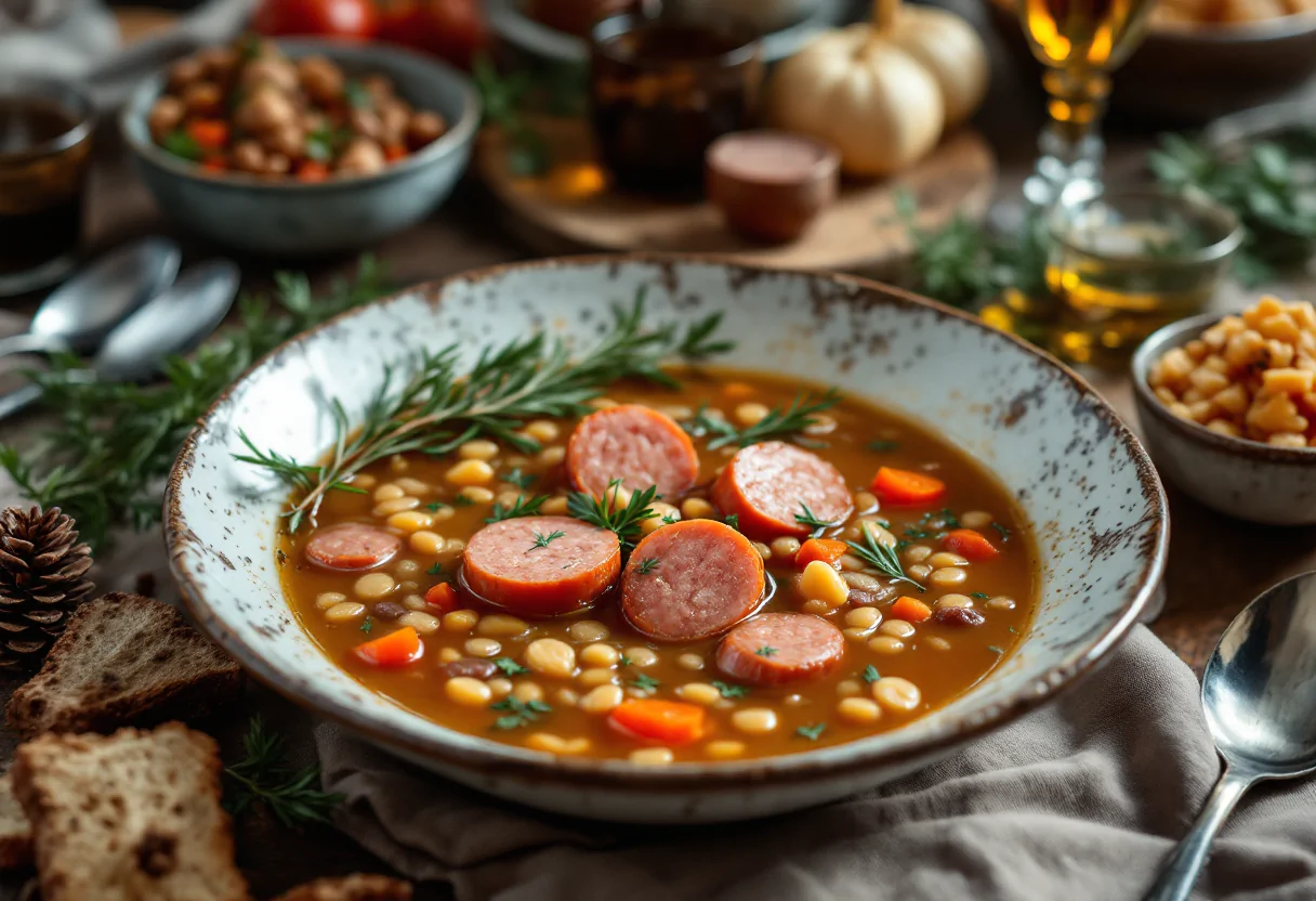 Per accompagnare la zuppa, servila con fette di pane tostato o crostini croccanti. Se vuoi variare ulteriormente, puoi sostituire la salsiccia con cotechino o prosciutto cotto. Questa ricetta è perfetta per una cena informale con amici e famiglia, e rappresenta un vero e proprio comfort food per le fredde serate invernali.