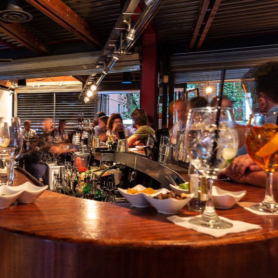 Durante l’orario dell’aperitivo richiama i giovani da tutti i quartieri di Roma: potrete assaporare un calice di vino, alla carta ne hanno una vasta scelta, o un buon cocktail accompagnato da carpacci, tartare e tempura di gamberi. Il tutto da mangiare al banco tra le chiacchiere con gli amici. Potrete degustare poi la cena nella splendida terrazza interna.
