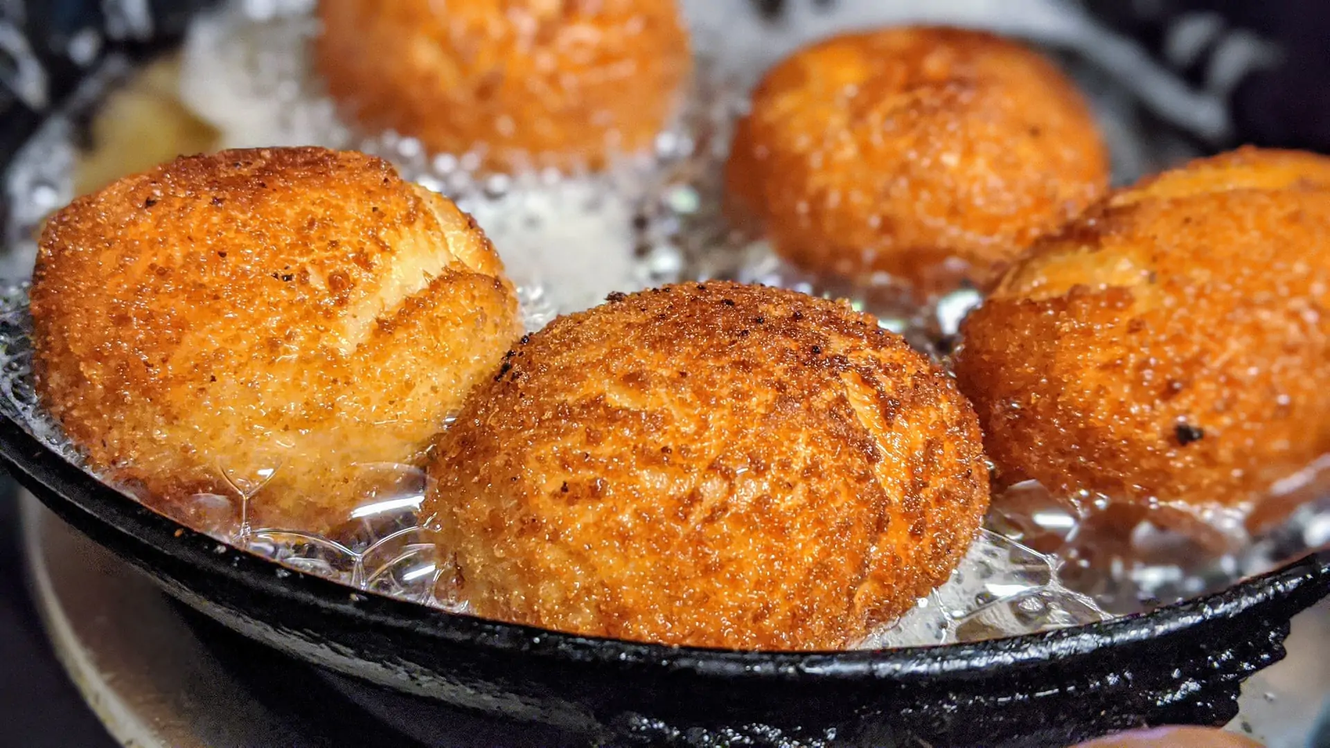 - Sigillate accuratamente i bordi di ciascun bombolone e friggeteli in abbondante olio di arachidi fin quando non appaiono gonfi e dorati. Gustateli caldi.