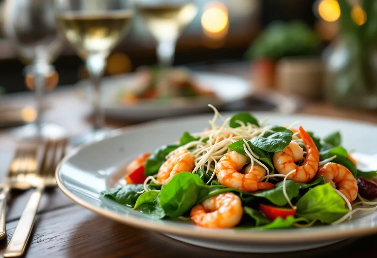 Scopri la freschezza dell'insalata di gamberi e spinaci, un antipasto elegante per ogni occasione.
