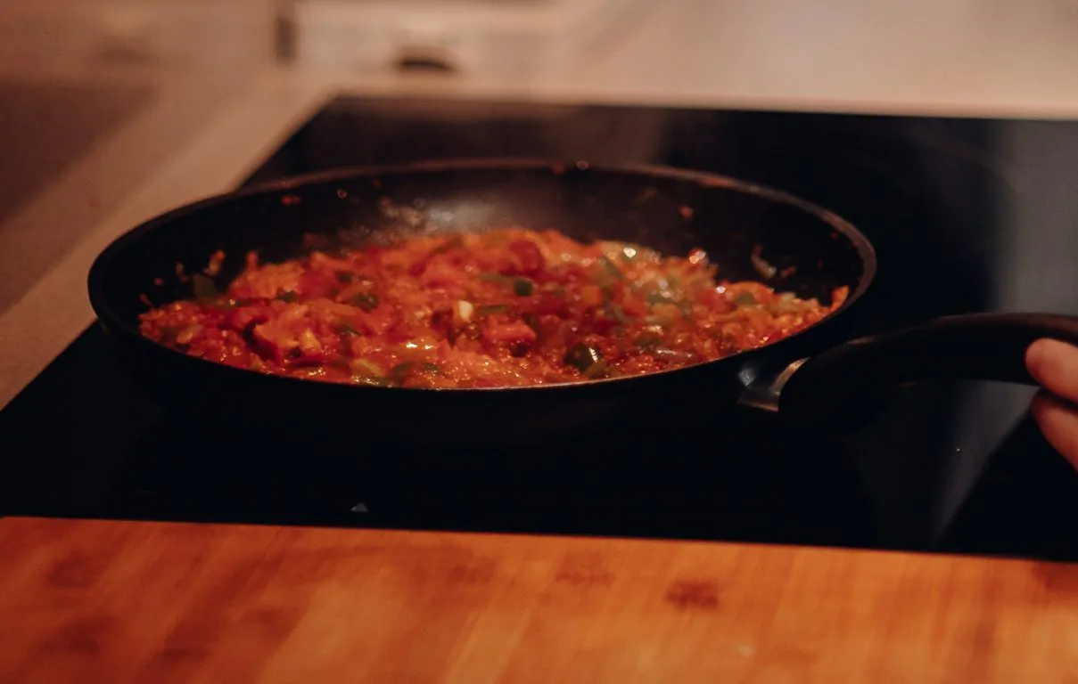 - Aggiungere la passata, i fagioli e il condimento, poi fare 4 piccole zone e aggiungere il merluzzo.