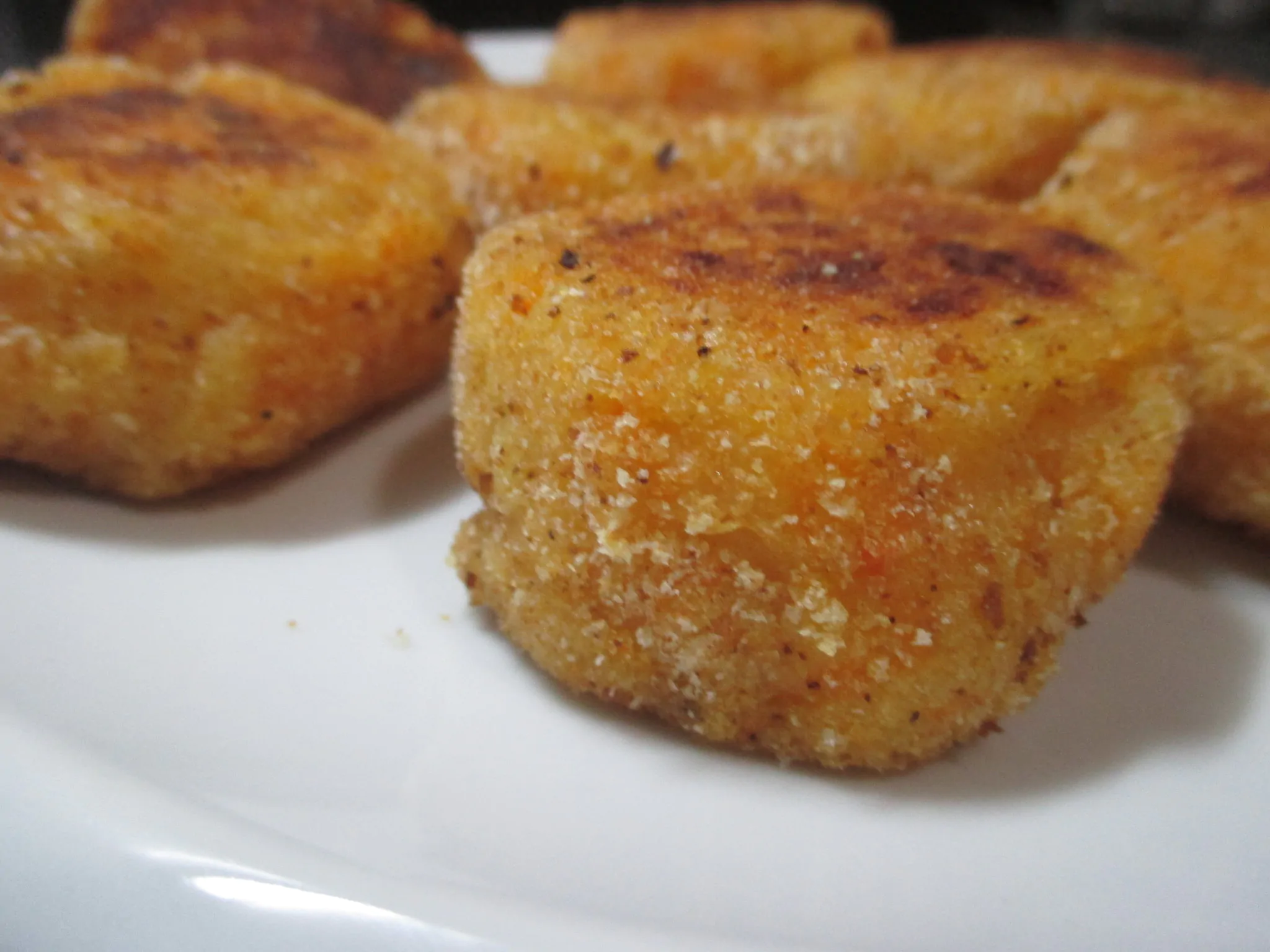- Accendere il forno e portarlo alla temperatura massima. Formare delle piccole palline con le mani (o con l’ausilio di un cucchiaio) e passarle nel pan grattato.