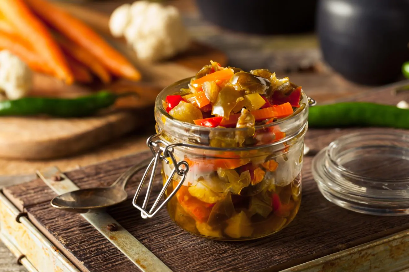 - Versate la giardiniera all’interno dei barattoli sterilizzati in acqua bollente, chiudeteli con dei tappi nuovi sterilizzati e lasciateli raffreddare capovolti in modo tale che si formi l’effetto sottovuoto.