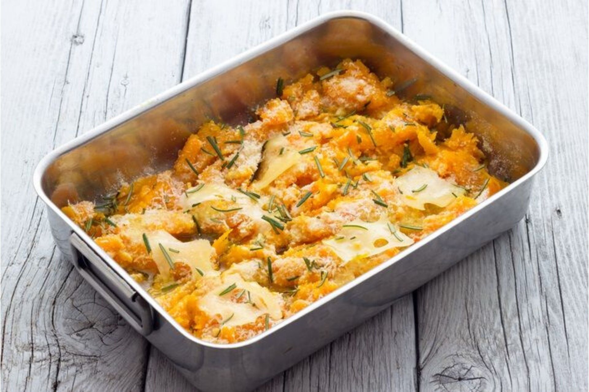 - Iniziate ora ad assemblare le lasagne light con verdure invernali. Prendete una pirofila e sul fondo ponete uno strato di besciamella fino a coprire del tutto la stessa. Prendiamo le lasagne e iniziamole a poggiare sulla besciamella, coprendo con uno strato di dadini di zucca e spolverizziamo il tutto con abbondante parmigiano reggiano e con un po' di besciamella.