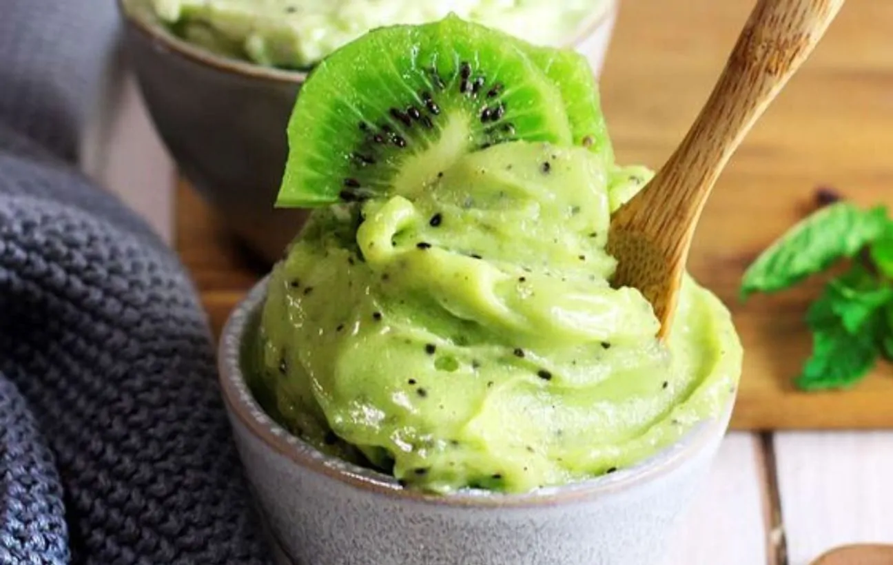Voglia di gustare qualcosa di fresco senza sentirsi in colpa per le calorie o perché siete intolleranti al latte? Questo sorbetto vegano al kiwi, preparato senza gelatiera, è l’ideale per voi. Oltre ad essere vegano, perciò adatto a tutti, è un ottimo digestivo o uno spezza fame da proporre a grandi e piccini.