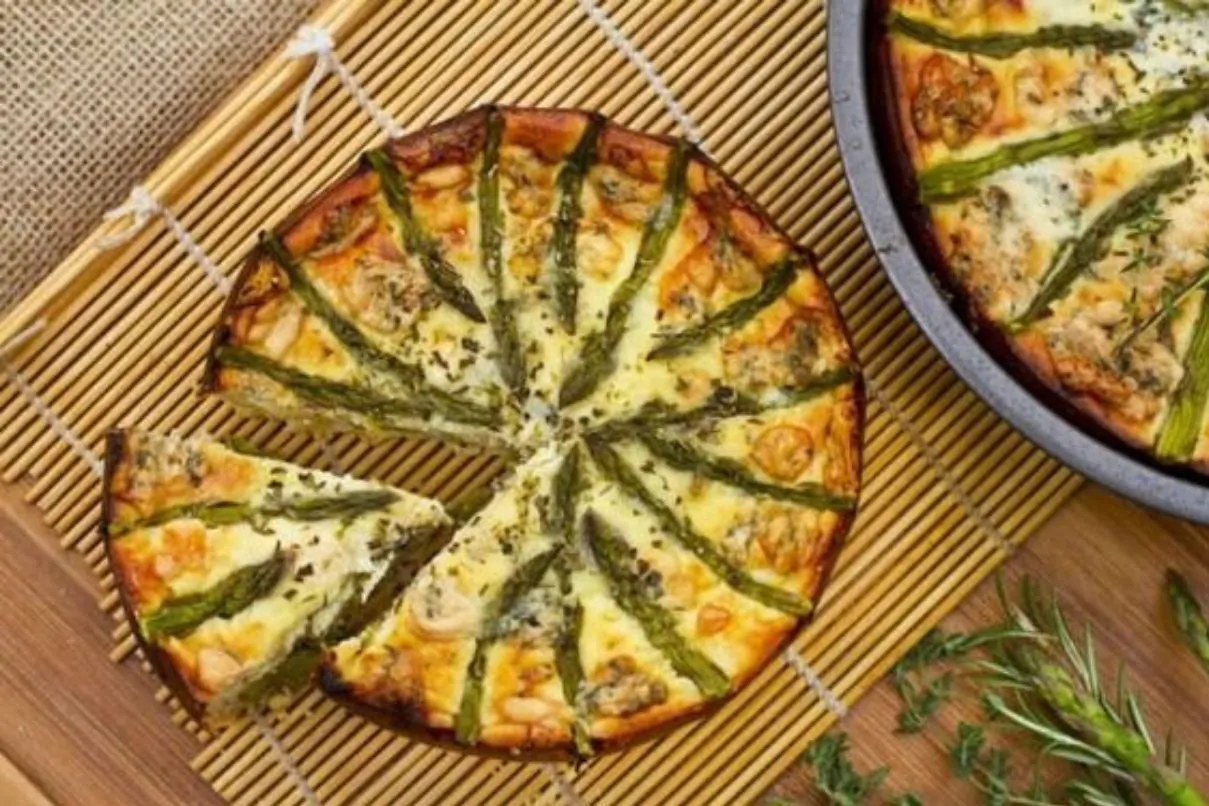 - Di seguito, bisogna decorare a proprio piacimento la superficie con gli asparagi ed infine infornare la teglia a 200°C per almeno 25 minuti.