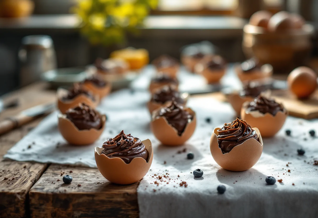Per realizzare queste tortine, è necessario procurarsi alcuni ingredienti base: burro, zucchero, uova, farina, cacao e lievito. La preparazione è semplice e divertente: inizia svuotando le uova con attenzione, lavando bene i gusci e poi riempiendoli per due terzi con l’impasto. Cuocili in forno all’interno di una teglia da muffin per garantire una cottura uniforme.